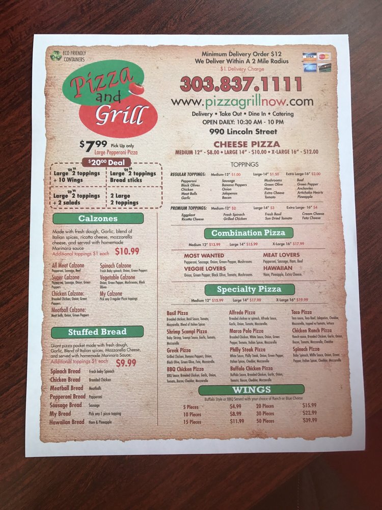 Welcome to Pizza And Grill | Denver Pizza, where comforting flavors meet a diverse menu tailored for everyone. Located at 990 Lincoln St, this casual eatery serves up an inviting range of pizzas, sandwiches, and burgers, boasting many vegetarian options to satisfy all palates.